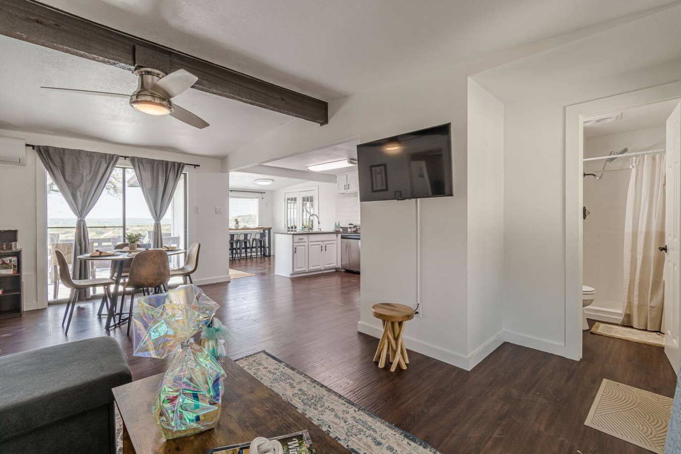 January 2026 5.00We popped over to Wimberly from Austin for 1 night and stayed at Eric’s place, and it was wonderful. Extremely close to Wimberly Square (<10 min drive), and while you’re at the home it’s private, has a comfortable queen bed, and plenty of living space with a main living/dining area and pretty breakfast nook looking out over the hills—plus a VERY large extra living space that would be great for indoor kids activities. We appreciated that there was a pack-and-play and games/coloring books on-site for our daughter. Also appreciated that the host let us check in an hour early. The views here are excellent, as the home is at elevation and there’s a large patio that stretches the full width of the house and has a clear view of the surrounding hills. Coupled with the dark skies out here, there were beautiful evening views of the stars. We’ll definitely be back!